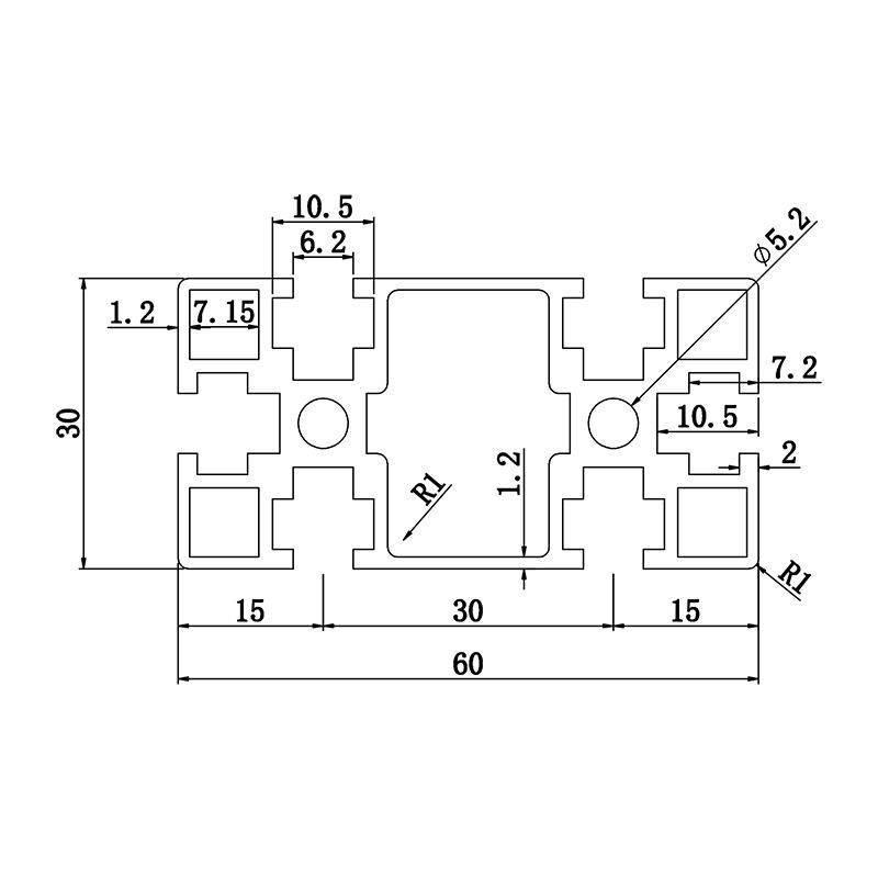 เน้น | โปรไฟล์การอัดขึ้นรูปอลูมิเนียม 30x60,เฟรมอลูมิเนียม T-slot สำหรับอุตสาหกรรม,โปรไฟล์อลูมิเนียมอัดขึ้นรูปพร้อมการรับประกัน |